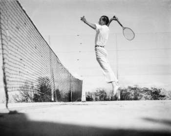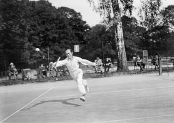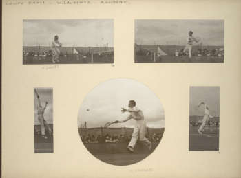 Jacques Henri Lartigue has a passion for sports, especially for tennis. An excellent player himself, he is filled with wonder at all the sensations provided by it: “Playing tennis in the sun. The smell of the cloackroms. The majestic green trees. The song of a blackbird (…). The sun above my head”1. Fanatic of speed and takeoffs, he is thrilled by the suspense of the game: “The ball comes and the racket awaits it with its extremely tense guts. Its dry, flexible and hollow sound dispatches a parcel of voluptuous pleasure through your body. To play a fast sport is to live in the fantastic country of atoms of seconds”2.