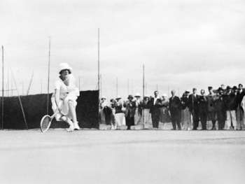 During the 1915 winter, Lartigue discovers a “phenomenon”, “a 14-years old girl called Suzanne Lenglen”. He watches her at the Nice Tennis-Club, where she follows the training of “a machine-to-play-tennis”: “She plays so well and has such a strong game that she would easily defeat many great men players”. At that time, she is already the French champion, and he wonders: will she ever become the world champion ?